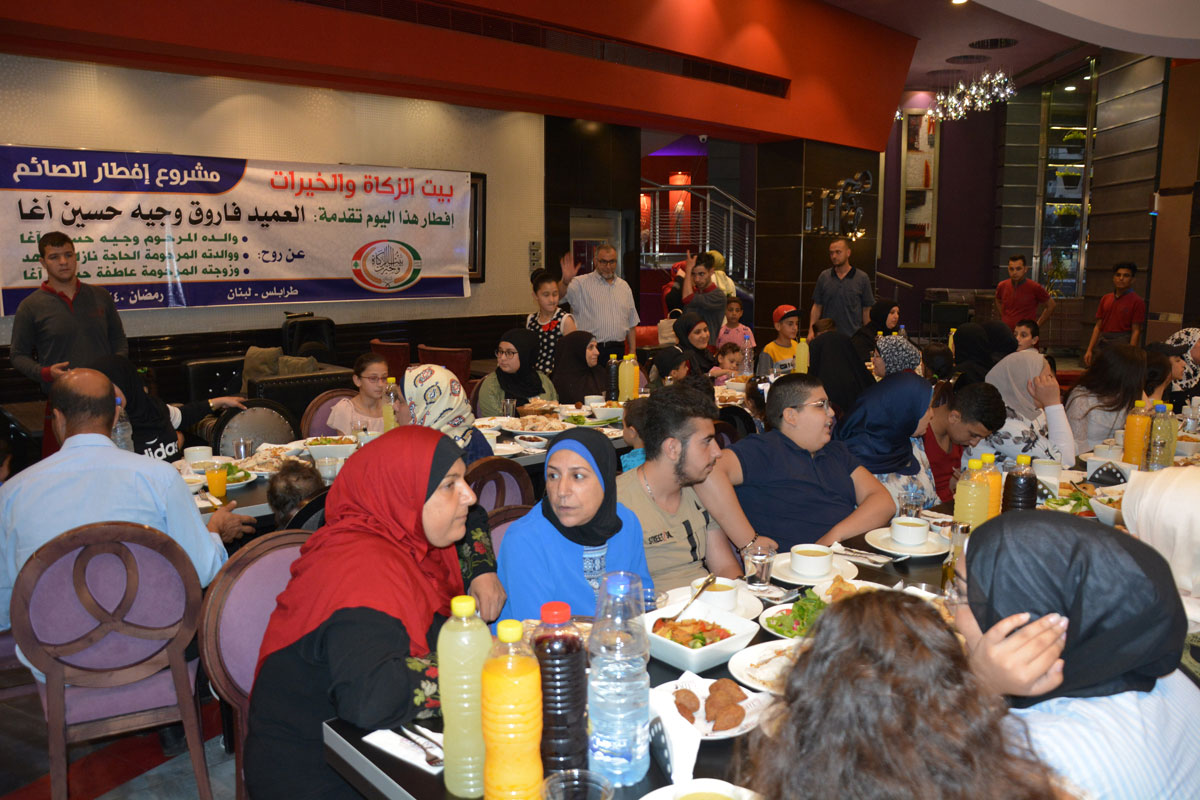 | تمدُّ عشرات موائد الإفطار الرمضانية سنوياً في جميع مناطق شمال لبنان، وإكراماً للفقير، وتحقيقاً لتمنياته في الدخول إلى مطاعم فخمة، يقيم البيت موائده في مطاعم كبيرة وفخمة مما يرضي المحسنين ويزيد من دعمهم للفكرة من باب المساواة بين الفقير والغني وإطعام الصائم الفقير من أفضل ما يأكلون. |