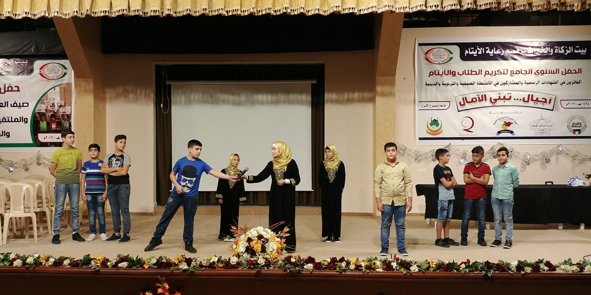 | قال صلى الله عليه وسلم:(أنا وكافل اليتيم كهاتين في الجنَّة، وأشار بالسبابة والوسطى) رواه مسلم ينفذ البيت مشروع كفالة اليتيم بطريقة مختلفة تحافظ على مشاعر اليتيم والترابط الأسري، حيث يكفلهم ضمن أسرهم ويقدم لهم الخدمات الصحية 100% ولأمهاتهم 50%، إضافة إلى المساعدات النقدية الشهرية والغذائية والكسائية في مواسم الخير والصيف والشتاء. إضافة إلى برامج الدعم النفسي والتوجيه والإرشاد والمتابعة المدرسية، فضلاً عن البرامج الترفيهية والمسابقات الهادفة والرحلات والمخيمات التربوية. دعاية |