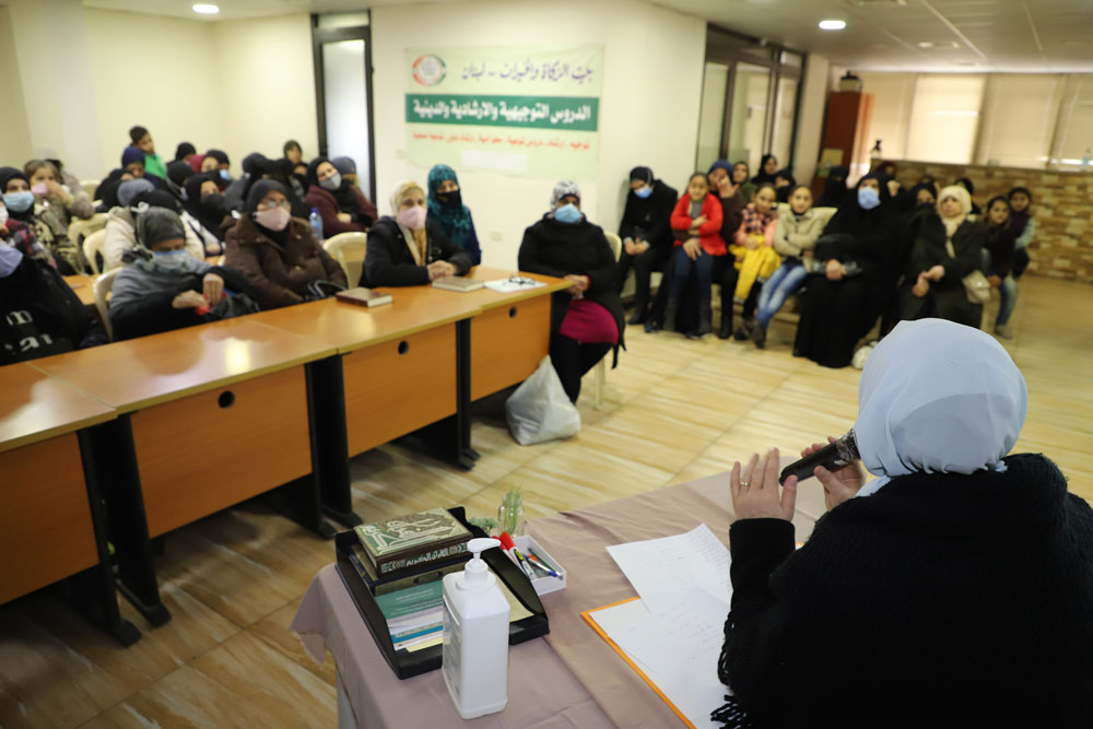 | يكفل مكتب الدعوة والإرشاد في بيت الزكاة والخيرات اثنين وعشرين داعية، يقومون بممارسة النشاط الدعوي من خلال إعطاء دروس داخل مؤسسات البيت حيث يزورون المرضى في مستشفى الحنان ويعطون الدروس لحاضنات الأيتام، كما أنهم يشاركون في الدورة الصيفية القرآنية التي يقيمها البيت للأيتام المكفولين. وهناك عدد من الأخوة الحفظة والأخوات الحافظات لكتاب الله تعالى يقيمون حلقات لتحفيظ القرآن وتعليم أحكام تلاوته. كما أن البعض الآخر يقيم حلقات لإعطاء أحكام الفقه والتفسير والآداب العامة في مساجدهم أو منازلهم أو في أمكنة عامة. ويتم هذا الأمر بالتعاون مع الندوة العالمية للشباب الإسلامي في المملكة العربية السعودية، وثلث آل المرزوق في الكويت. كما تقوم لجنة الدعوة والإرشاد بإعداد دورات تأهيلية للموظفين في مجال فقه الزكاة والسلوك الوظيفي والتعامل مع المانح والمستفيد. كما تشرف على برامج البيت الدعوية وعلى المساجد التابعة للبيت وتعمل على إعداد الخطط لرعاية المساجد والمراكز الدعوية التي يقوم البيت على إنشائها. |